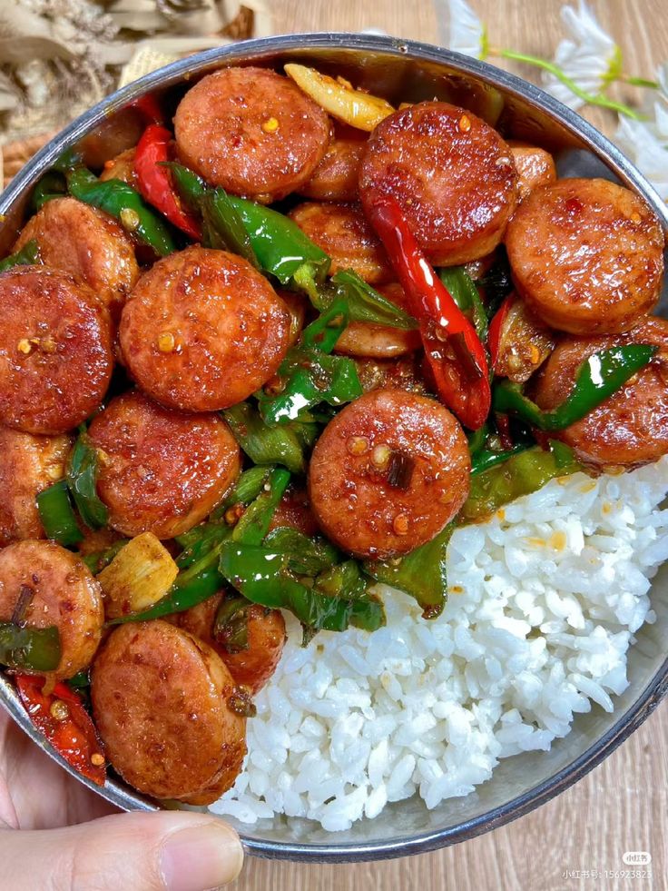 NAsi dengan sosis dan cabe hijau